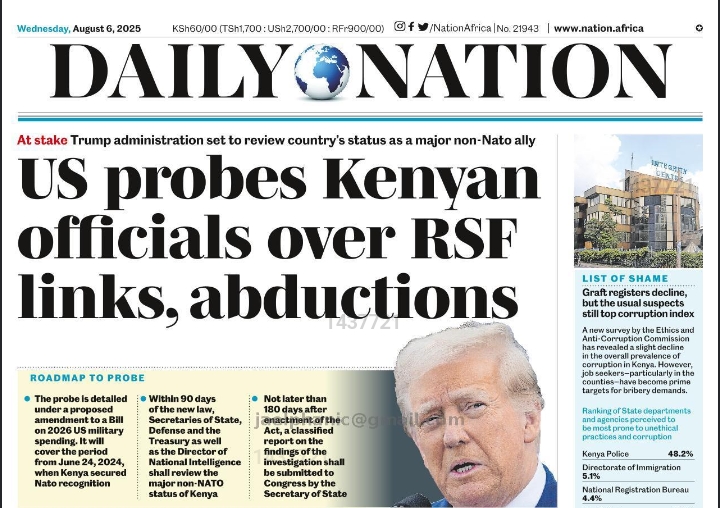 Today's Daily Nation Newspaper -Aug 06,2025 covered different topics ranging from Politics, Human interest to…
