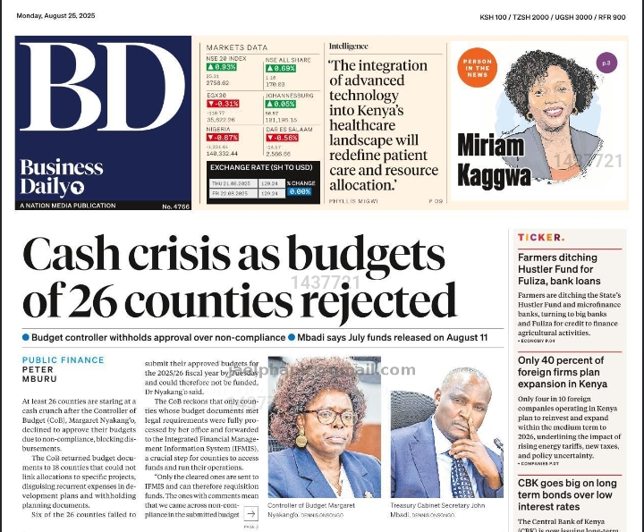Today's Daily Nation Newspaper covers different topics with wider range of stories.
