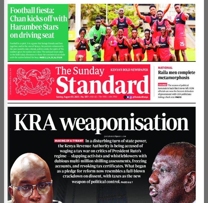 Today's The Standard Newspaper covers different topics with wider range of stories