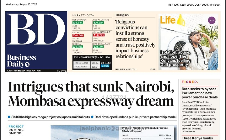 Today's Daily Nation Newspaper covers wide range of stories ranging from Politics, Human interest to Sports.
